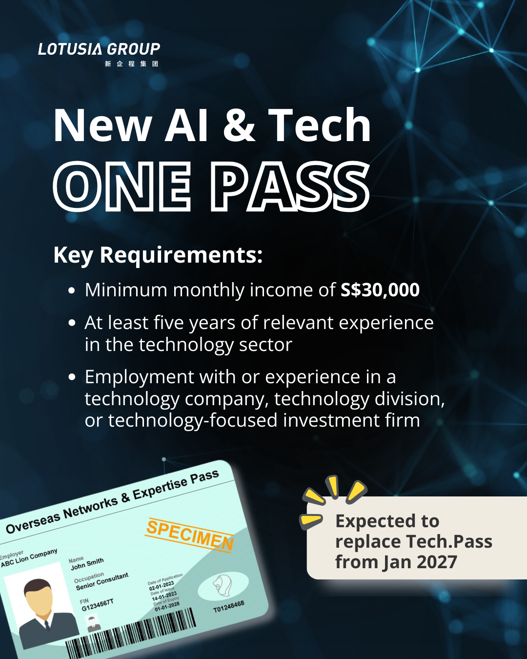 The new scheme will replace the existing Tech.Pass and is expected to take effect in January 2027 (Source: MOM 2026 – Winning the Race for Global Talent).